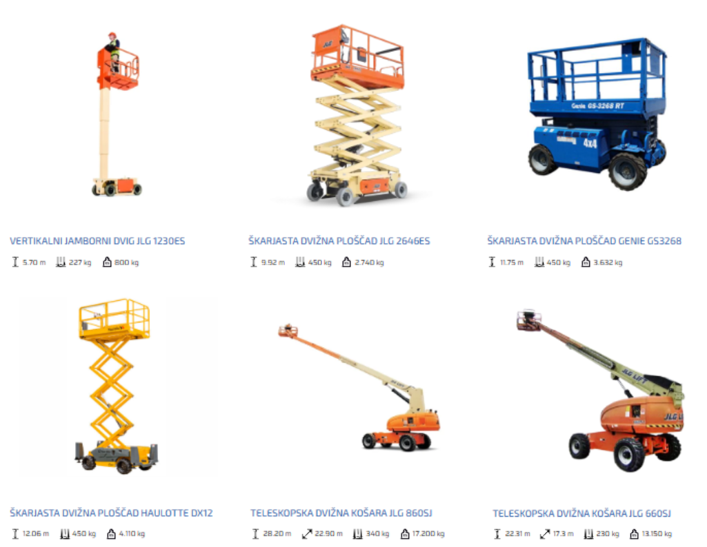 Najem dvižnih košar, ploščadi in teleskopskih viličarjev
